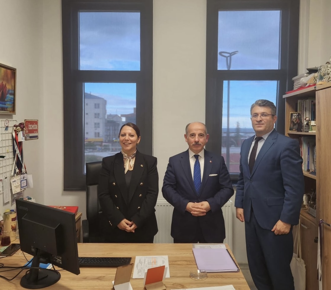 Trabzon Denetimli Serbestlik Müdürü Mehmet SEMİZ ve Kurum Öğretmeni İmdat YAVAŞ, Psikoloji Bölüm Başkanı ve Bağımlılıkla Mücadele Koordinatörü Dr. Öğretim Üyesi Fatma Dilek ŞEKER’i ziyaret etmişlerdir. Yapılan ziyarette, Denetimli Serbestliğin kuruluşunun 20. yılı kapsamında yapılacak faaliyetler hakkında görüş alışverişinde bulunmuşlardır.